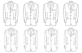 衿の形、ポケットの形、しぼり具合など上着だけでも多彩なデザインがあなたの思うがままに出来ます。(お好みのスーツが載った雑誌などをお持ち下されば参考になりますよ。)